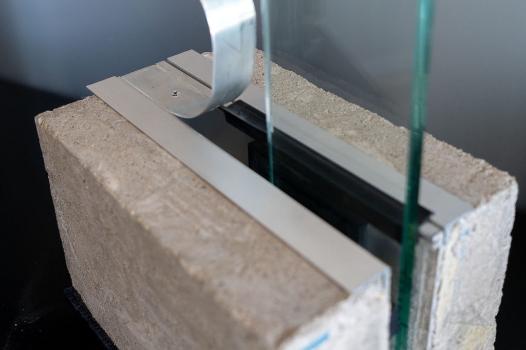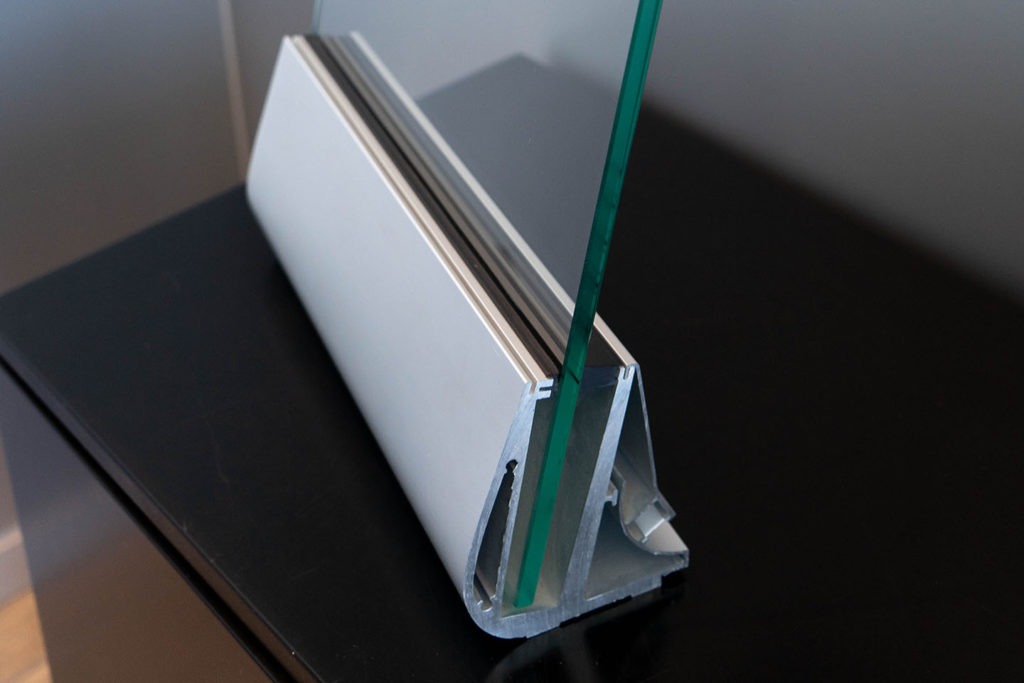 Baranda con vidrio empotrado, sin parantes verticales ni pasamanos.