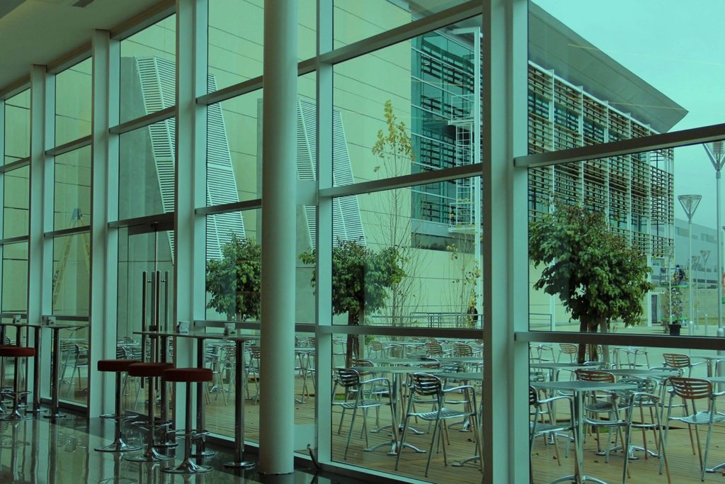 • Sistema de vidrio contenido compuesto por columnas y travesaños de dimensión variable según requerimientos de la obra, con prensas y tapas de aluminio colocadas en sentido horizontal y/o vertical.